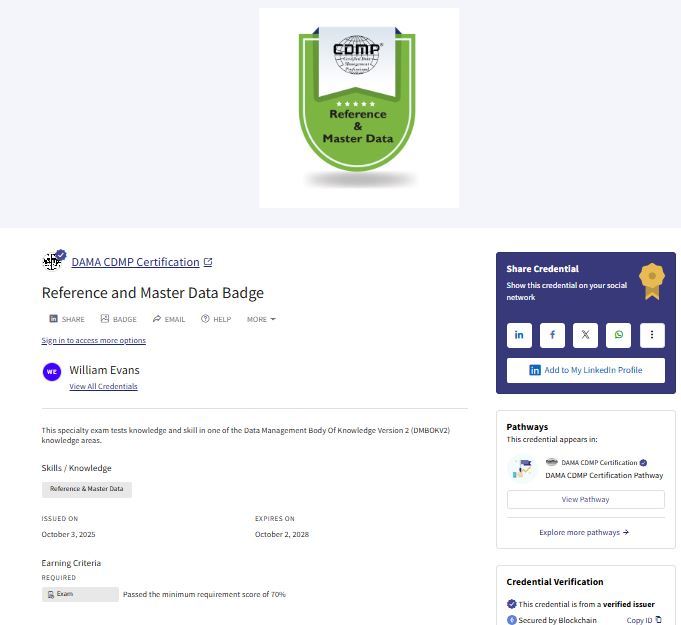 Internationally Certified Data Management Professional (CDMP - Practitioner)